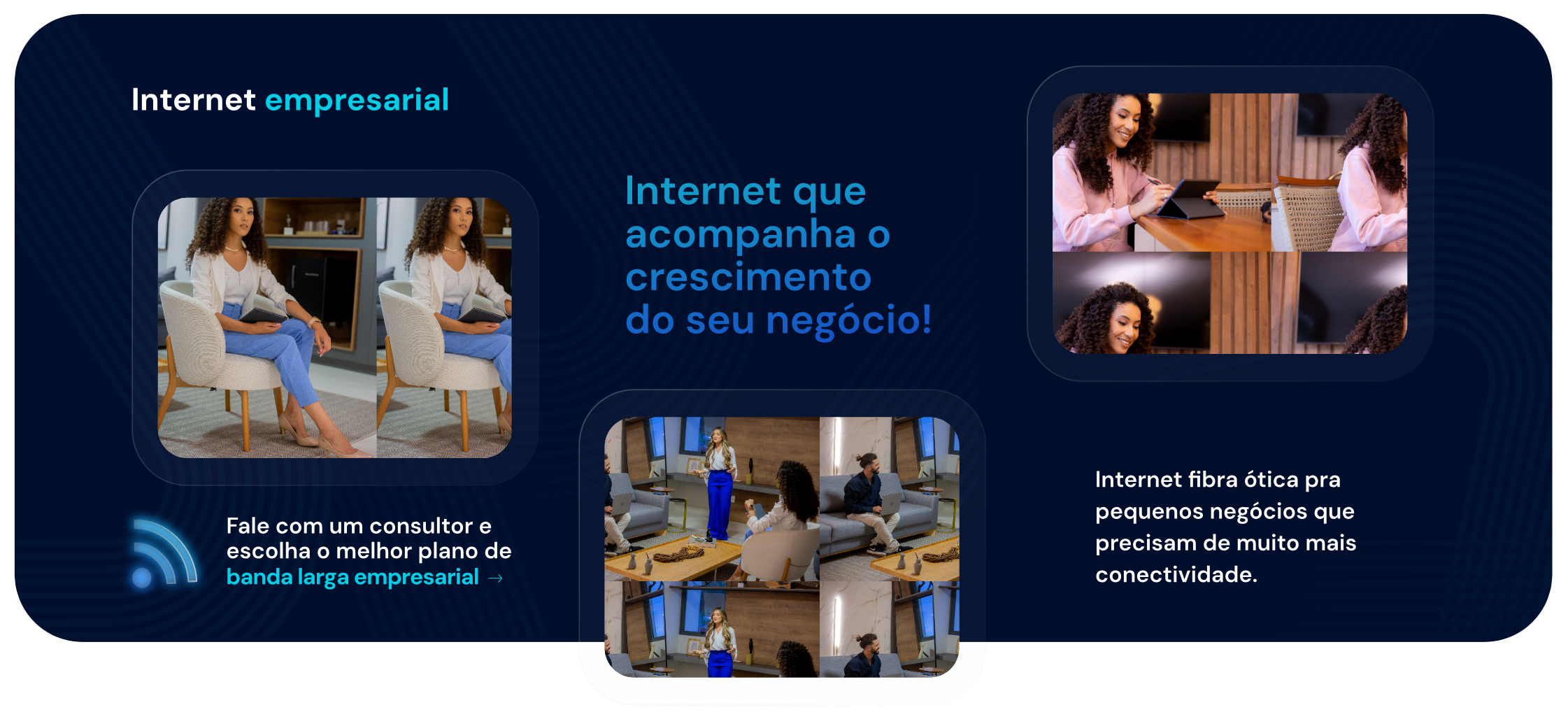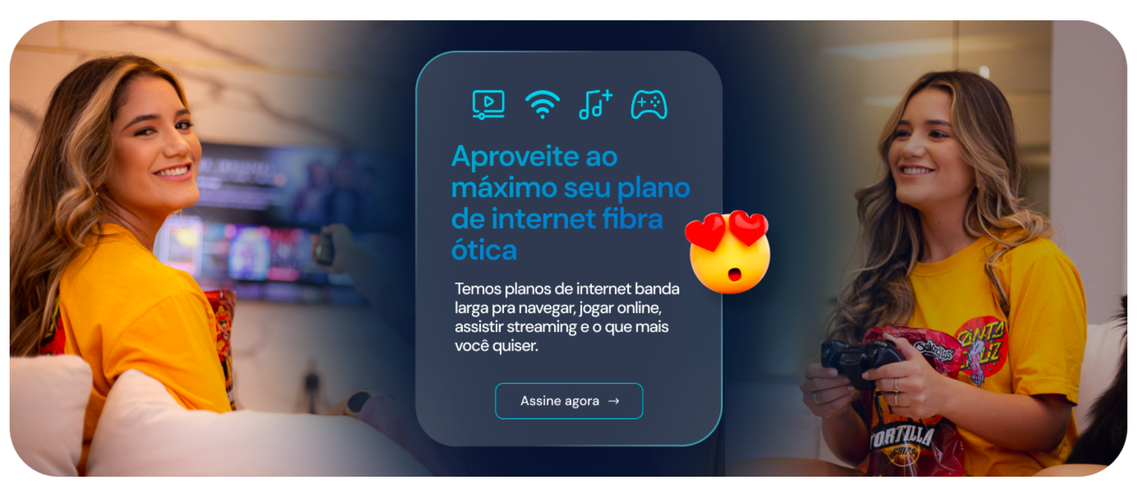 Banda larga com fibra óptica e Wi-Fi pra navegar à vontade.