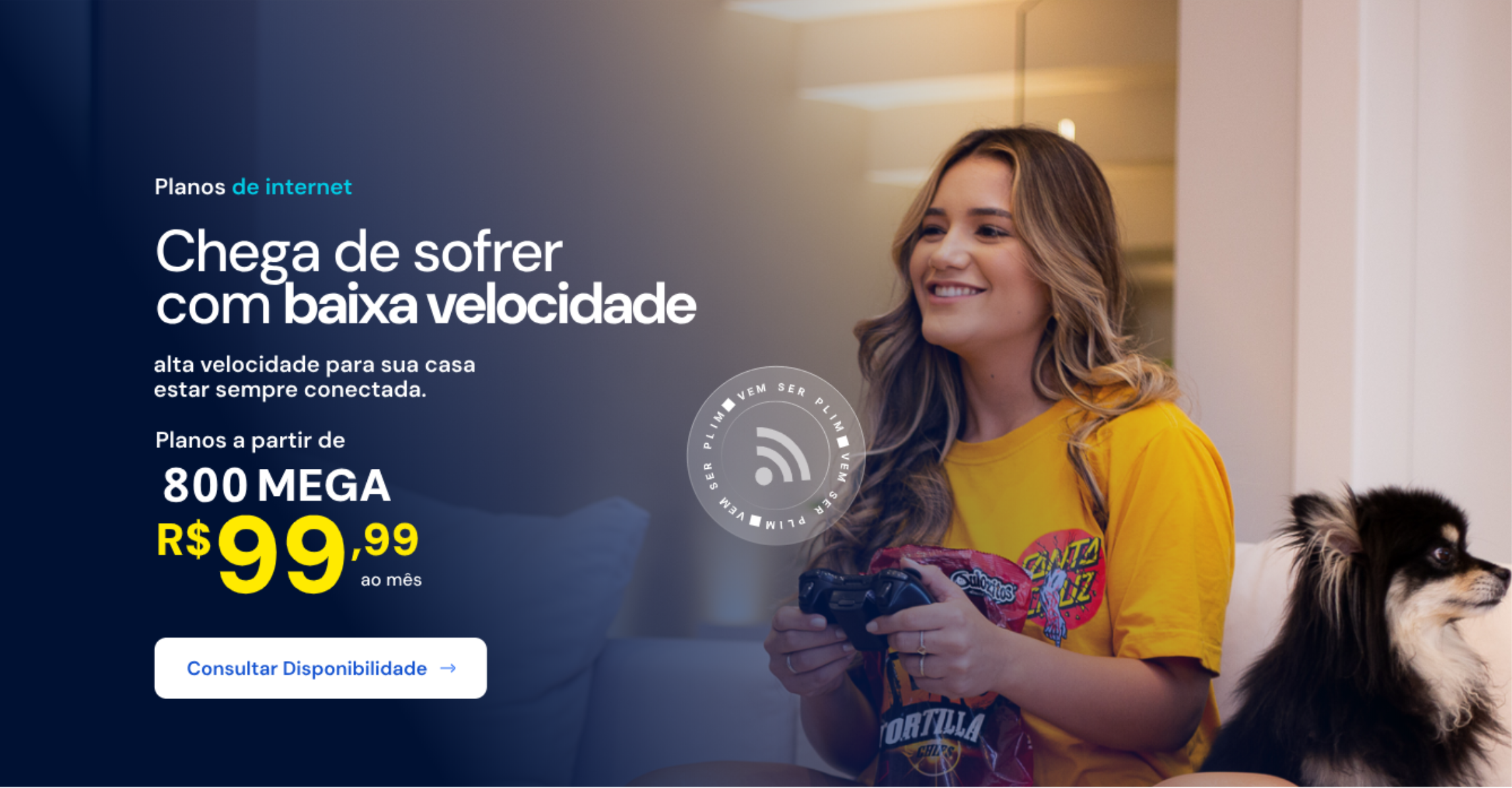 Banda larga com fibra ótica e Wi-Fi pra navegar à vontade.